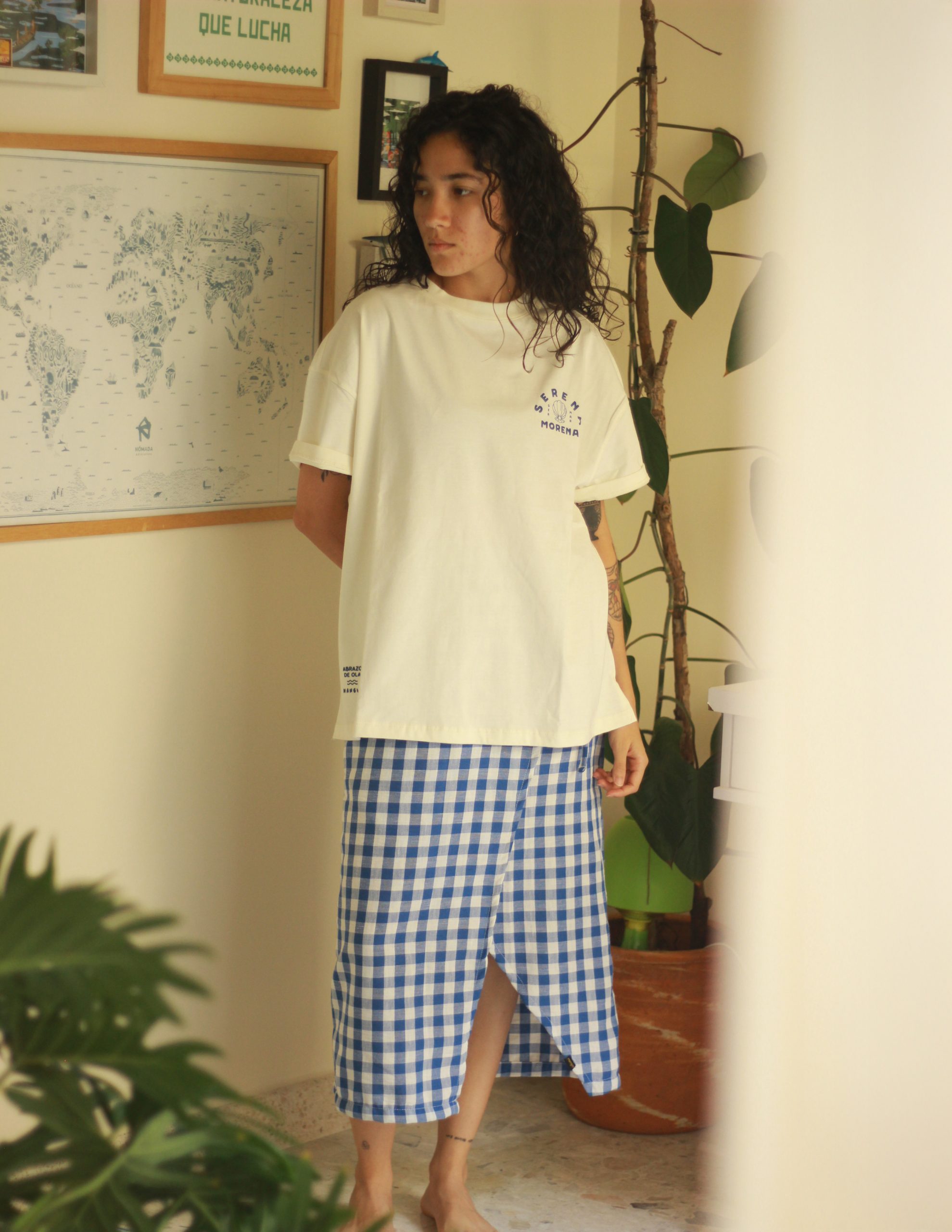 Pensada como pieza versátil para playa, río o ciudad. Funciona como salida de baño o como falda principal para looks relajados y conscientes.