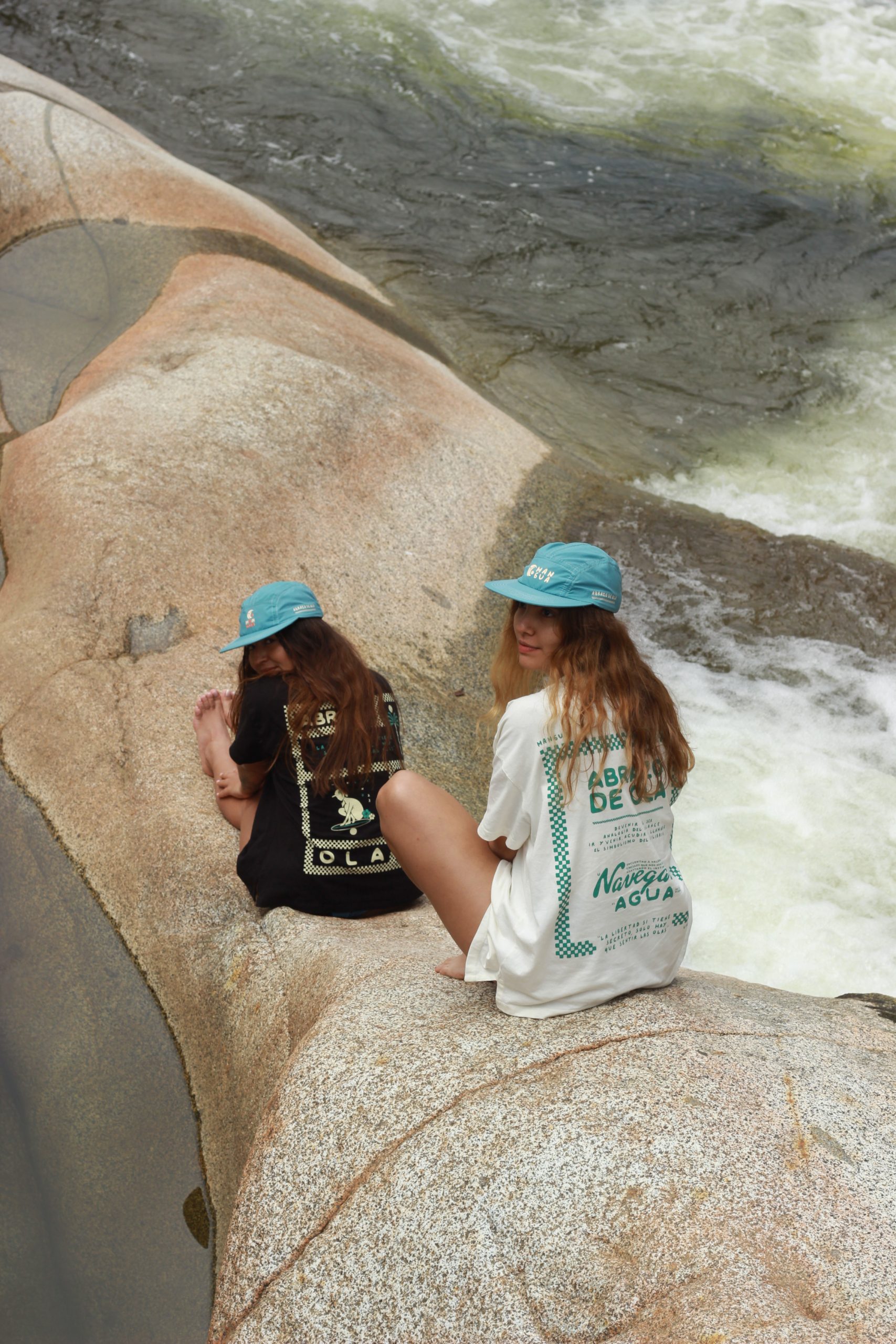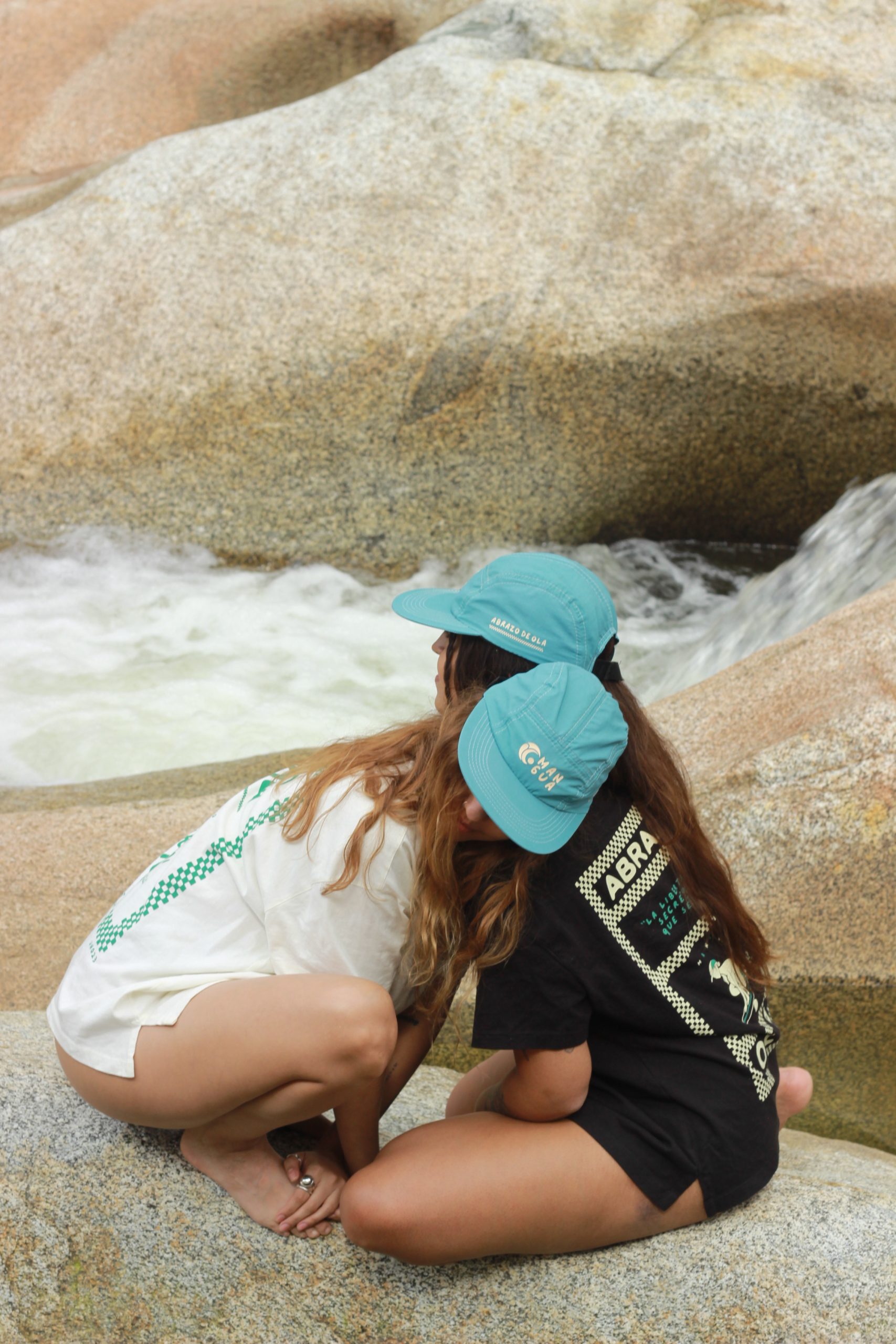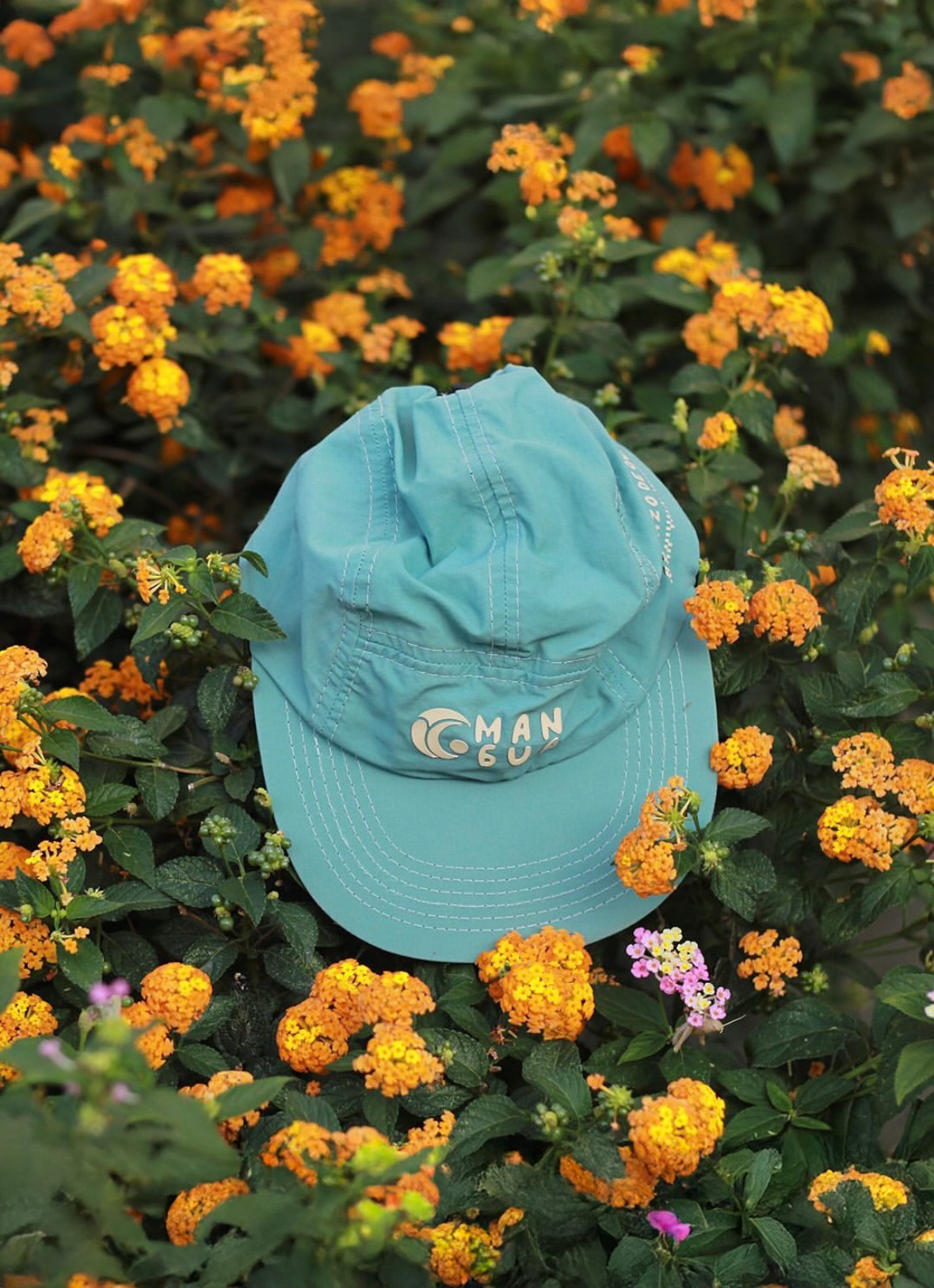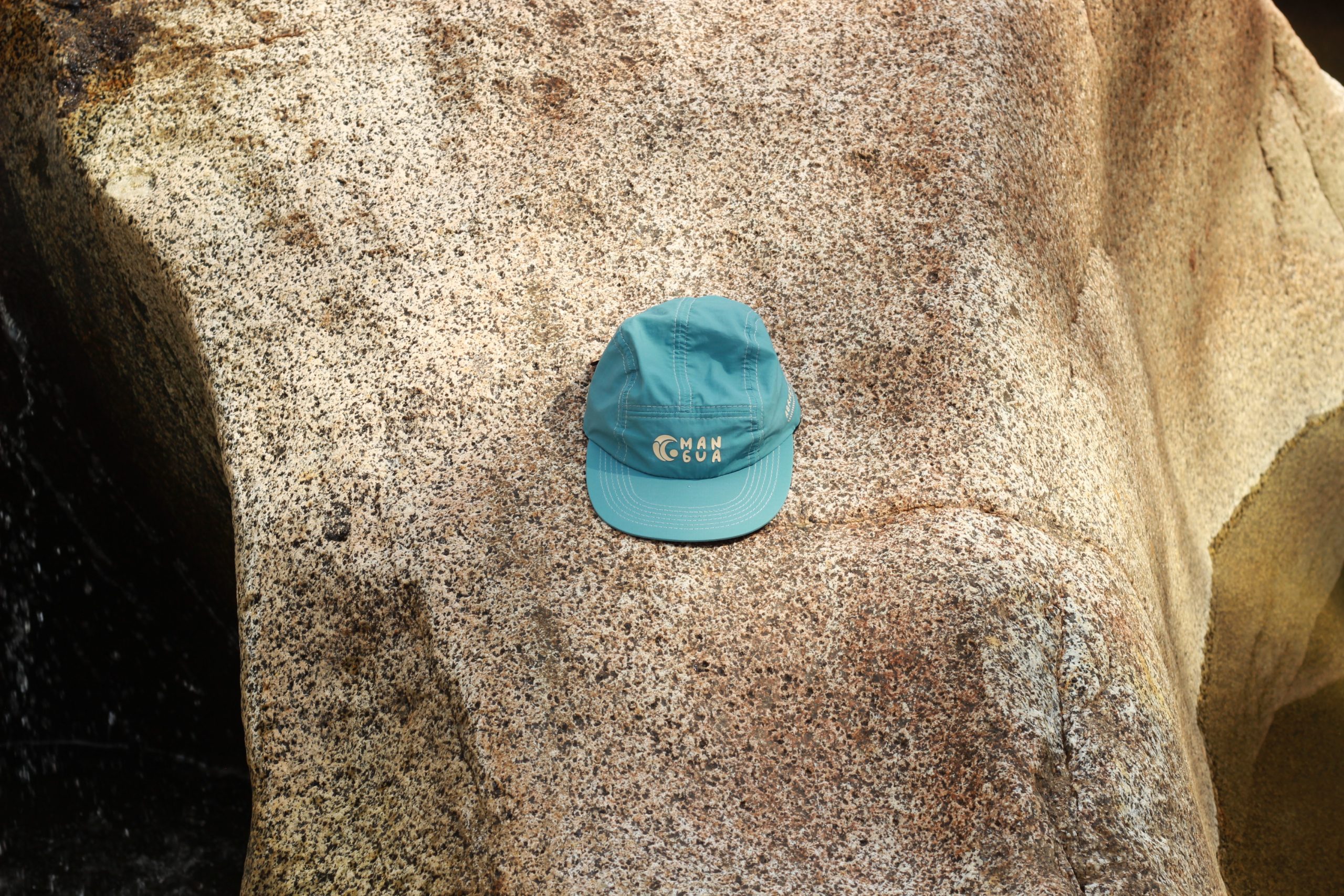 Gorra 5 paneles color pistacho, está hecha en tela microtec impermeable, tiene un broche ajustable atrás y el logo en el frente.